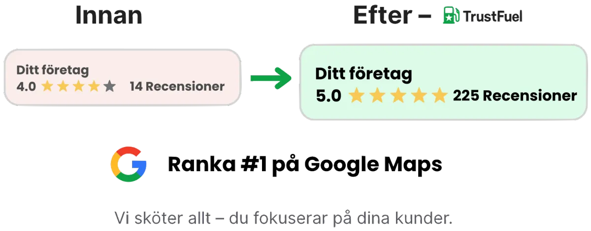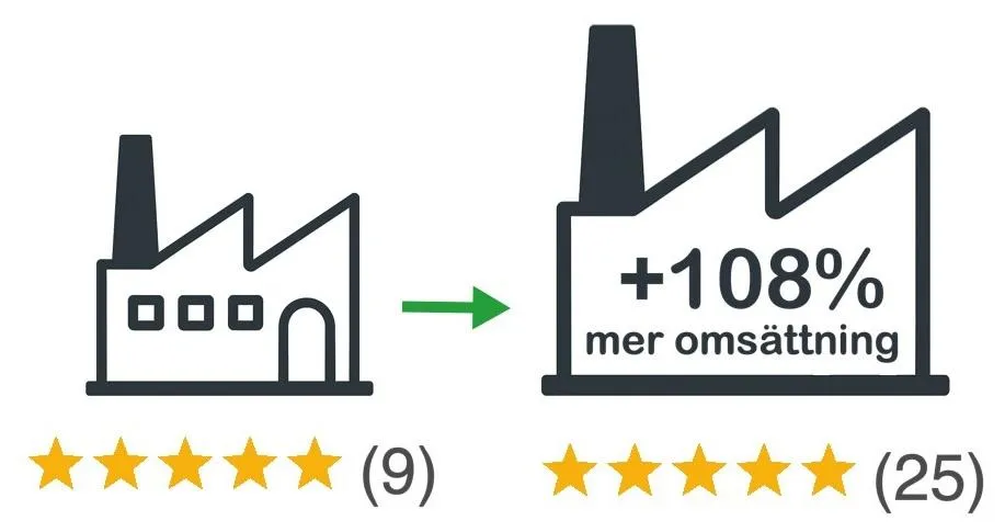 Självklart varierar resultat mellan företag, men trenden är tydlig: fler recensioner → starkare synlighet → fler kunder.